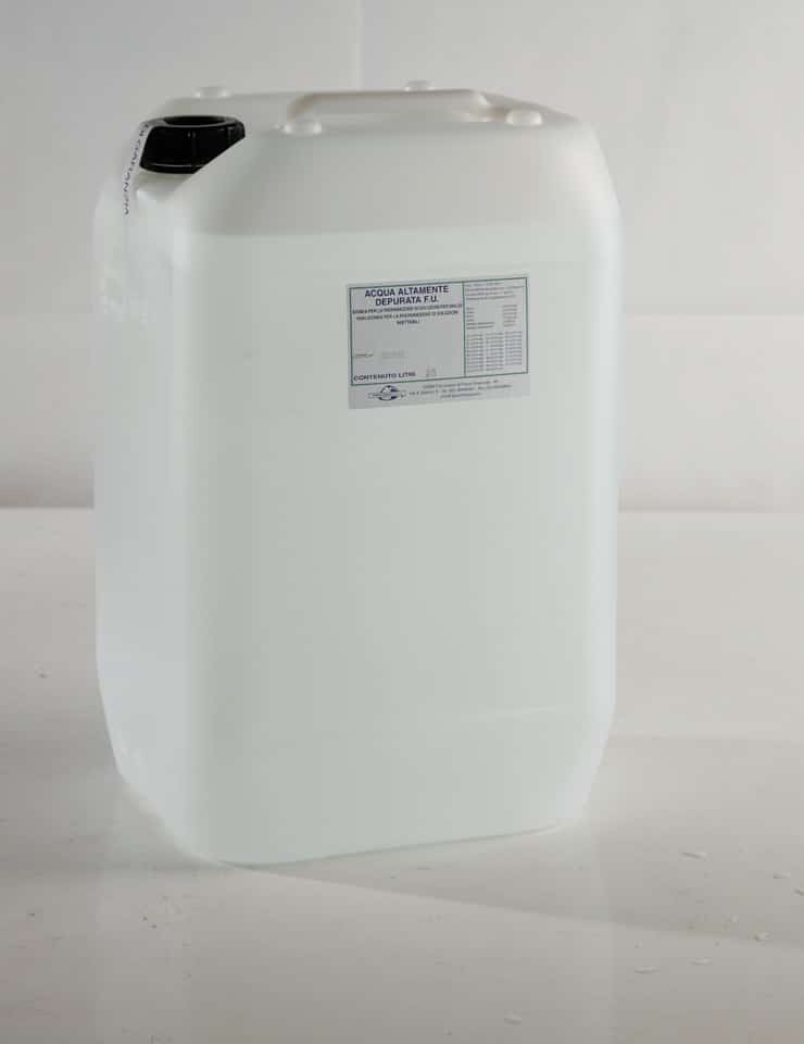 Partendo dall’Acqua Depurata F.U., attraverso ulteriori processi di depurazione, si ottiene l’Acqua Altamente Depurata F.U., la quale viene immediatamente confezionata in cappa sterile. Parliamo di un prodotto estremamente puro, con una conducibilità inferiore a un microsiemens. Scopri di più sulle sue proprietà!