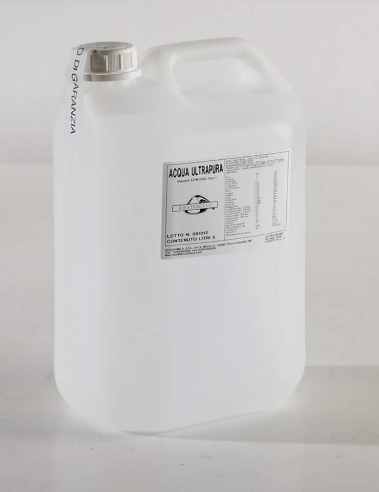 L’Acqua Ultrapura che realizziamo soddisfa gli standard ASTM D1193 type 1 e presenta un valore T.O.C. inferiore a 50 ppb. Per ottenere un prodotto di questo grado di purezza, l’Acqua Altamente Depurata F.U. viene fatta passare attraverso un sistema di purificazione dedicato di ultima generazione.