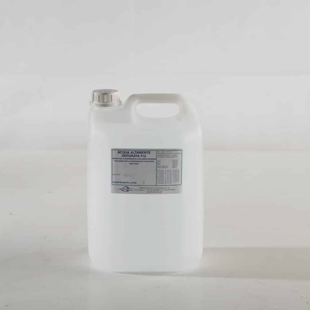 L’Acqua Altamente Depurata F.U. è ottenuta dal passaggio di Acqua Depurata F.U. in un altro impianto di ultrafiltrazione. All’uscita dall’impianto, viene confezionata in cappa sterile. Quello che si ottiene è un’acqua apirogena con una conducibilità inferiore ad un microsiemens. Il confezionamento di questo prodotto prevede l’utilizzo di diverse tipologie di imballo: